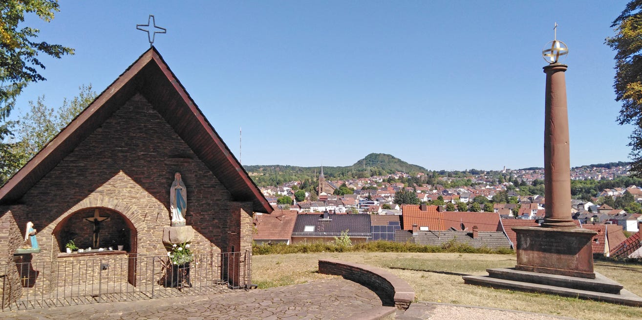 Während der Sommerferien habe ich unerwartet eine Lourdesgrotte gefunden – gesucht hatte ich jedoch die Lebensorte meines Namenspatrons Pater Wilhelm Eberschweiler SJ. Hierdurch kam ich nach Püttlingen im Saarland, wo er im Jahr 1837 geboren wurde. Dort fand ich bei meiner Rundreise mit Mühe das Elternhaus. In der Nähe steht die Kirche St. Sebastianus, der „Köllenbacher Dom“, für den seine Taufkirche 1911 abgerissen worden war. An den Ort seiner Taufe erinnert eine Stele im benachbarten Garten, in dem auch eine Lourdes-Grotte zu finden ist. Meine unerwartete Entdeckung an seinem Taufort passt zu seiner Glaubenshaltung: Für ihn war es eine Wirklichkeit, dass so, wie Maria unsere liebevolle Mutter ist, wir uns bemühen, immer mehr ihre liebevollen Kinder zu werden, an denen sie Freude erlebt.